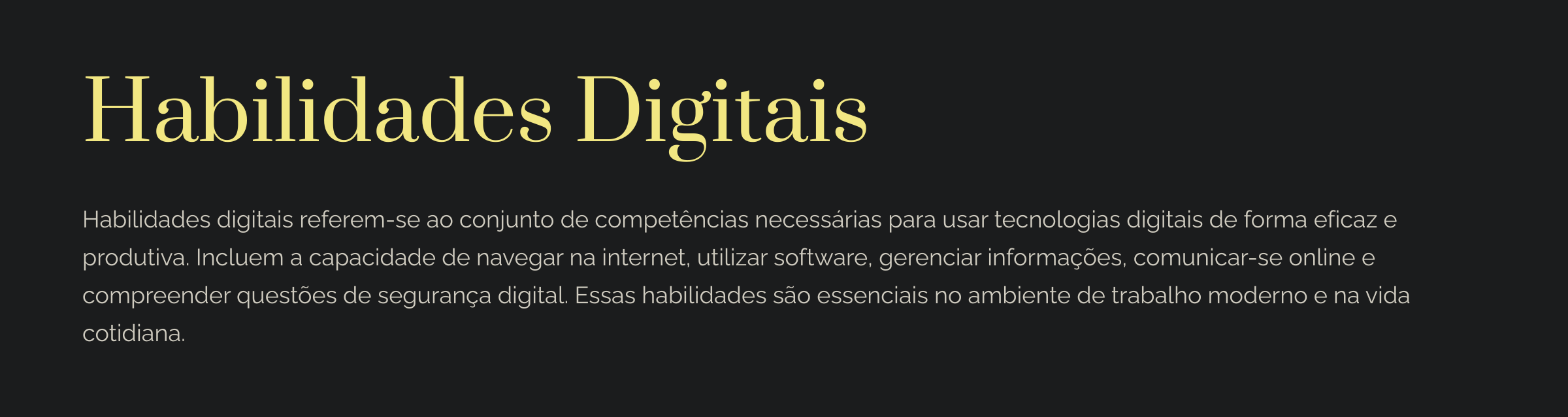 Na contemporaneidade, as habilidades digitais emergem como competências essenciais em um mundo cada vez mais interconectado e repleto de informações. O avanço das tecnologias digitais transformou não apenas a maneira como nos comunicamos, mas também como aprendemos e trabalhamos. Neste contexto, desenvolver habilidades digitais é vital tanto em âmbitos pessoais quanto acadêmicos e profissionais.